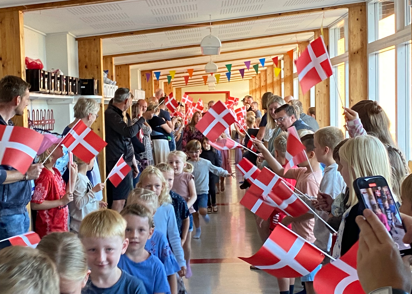 På mange skoler er der en særlig velkomst for børn og forældre – ofte med taler, fælles samling og mulighed for at se klassen og møde lærere og pædagoger.