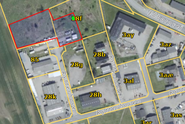 Ca. 4650 m2 stort erhvervsarealsareal. Del af matrikler 28d og 28f Sørup, Svendborg Jorder, Faaborgvej 125 – arealet sælges KUN samlet.