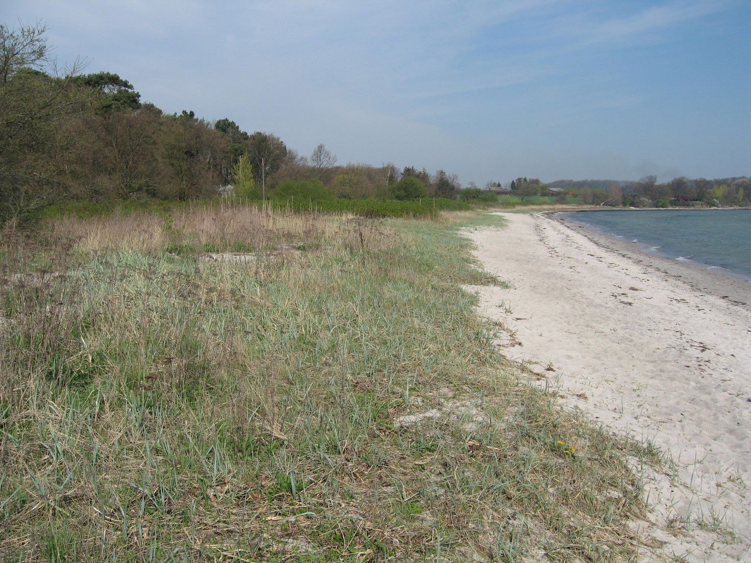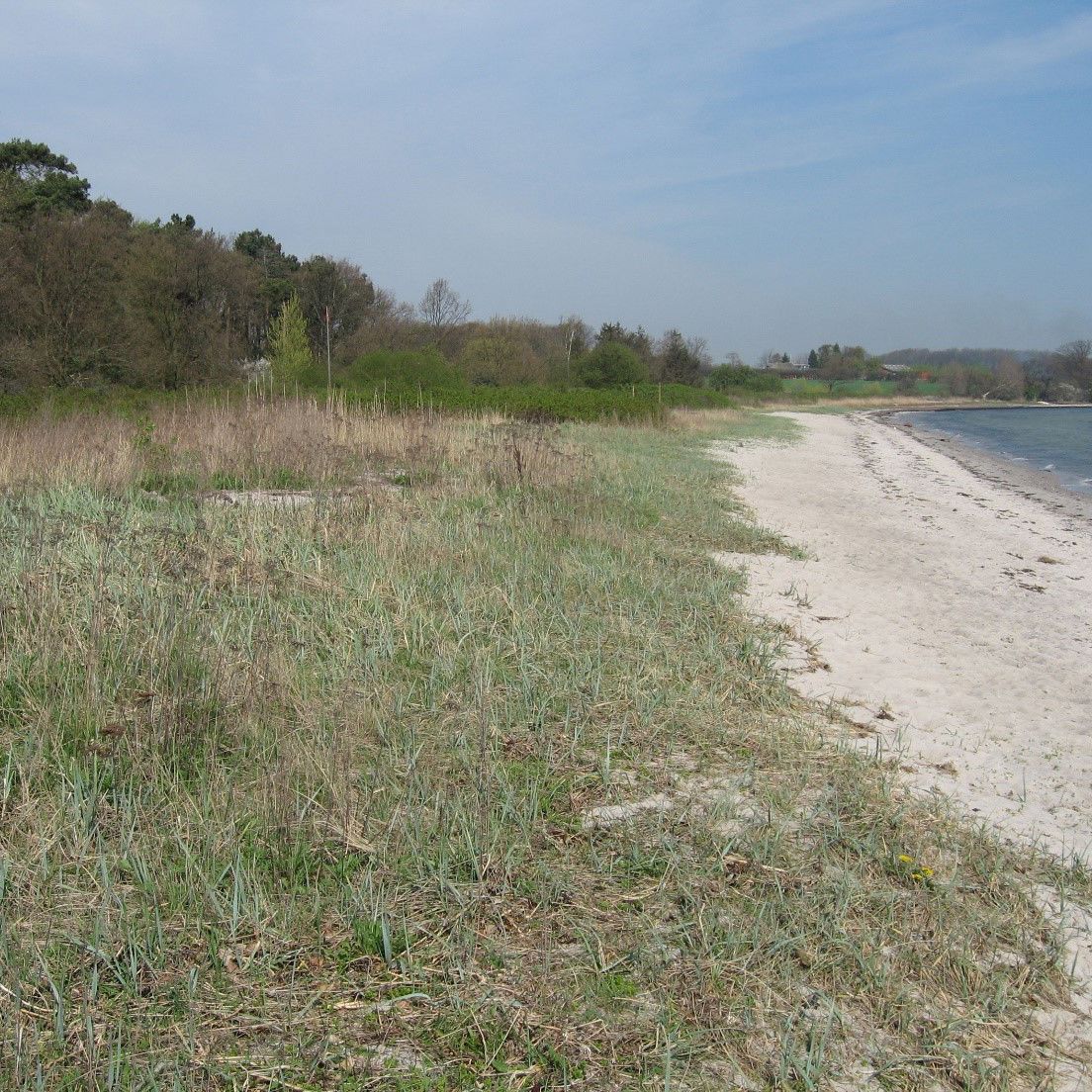 Bag stranden skråner terrænet opad igennem Tankefuld skov.