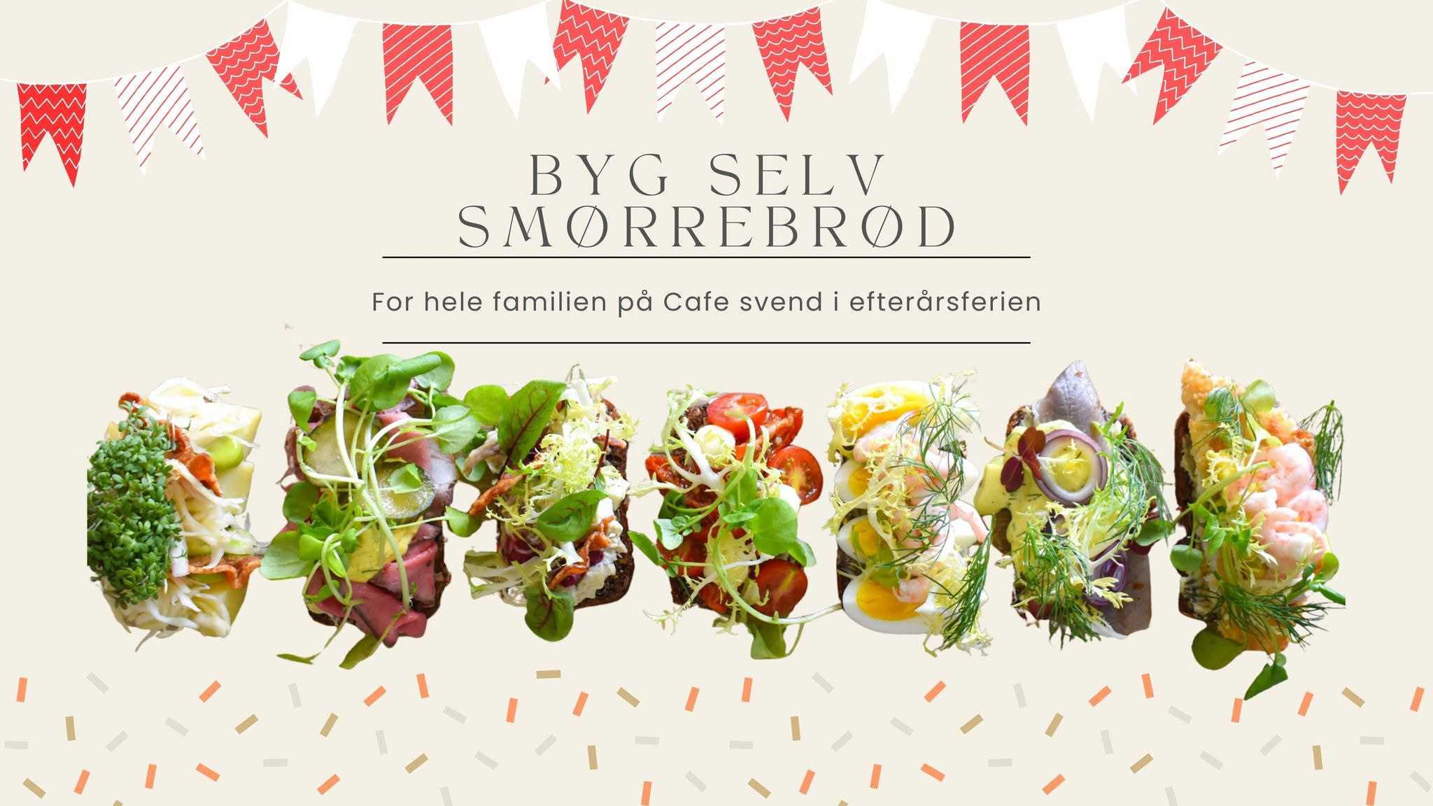 ... og kom til en hyggelig og velsmagende frokost på Café Svend i efterårsferien. Denne dag kan I selv bygge jeres helt egne højtbelagte smørrebrød.