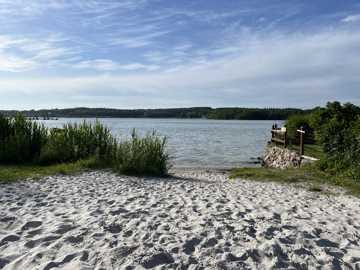 Udover Smørmosen, som er øens største strand, kan man finde flere små badesteder og broer. Den lille offentlige strand ved Snævringen er et populært sted at dyppe tæerne efter en lang dag.